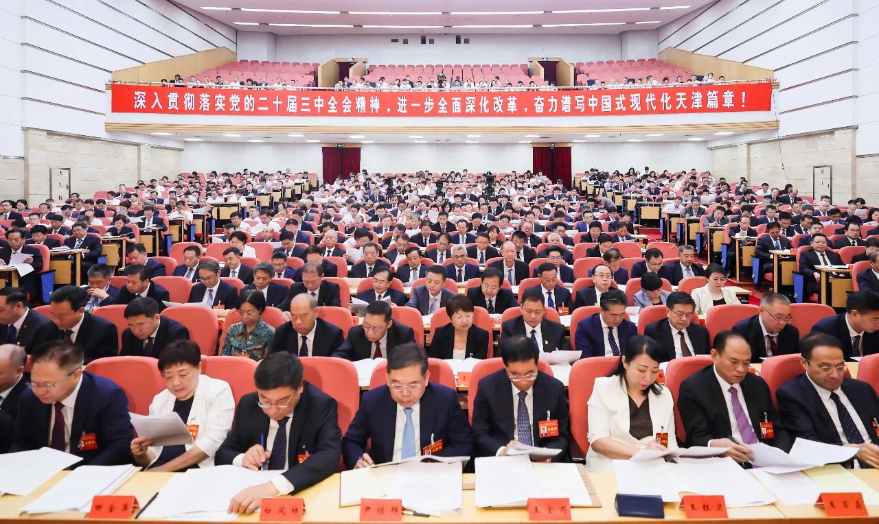 全会对进一步全面深化改革做出深入部署。创造更加公平、更有活力的市场经济发展环境,坚持和落实“两个毫不动摇”,融入全国统一大市场建设,营造市场化、法治化、国际化一流营商环境,深化财税、金融体制改革。推进京津冀区域一体化、京津同城化体制机制改革创新,完善市场化引进北京资源要素的常态化合作机制,健全协同创新和产业协作机制,深化重点领域协同发展体制机制创新。健全发展新质生产力、推动经济高质量发展体制机制,构建科技创新和产业创新对接联动机制,创新实体经济和数字经济深度融合体制机制,完善发展服务业体制机制,健全现代化基础设施建设体制机制,完善产业成龙配套、成链成群发展机制。构建产学研深度融合、教育科技人才一体化发展体制机制,深化教育综合改革,深化科技体制改革,深化人才发展体制机制改革。完善港产城联动发展、城乡融合发展体制机制,深化盘活存量体制机制改革,完善港口带物流、物流带经贸、经贸带产业、产业带城市发展体制机制,健全推进新型城镇化体制机制、推动乡村全面振兴长效机制。完善联通国内国际双循环、推进高水平开放发展体制机制,着力塑造对外开放新优势,深化外贸外资外经体制机制改革,深度融入高质量共建“一带一路”。完善以全过程人民民主、全面依法治市保障高质量发展制度体系,加强人民当家作主制度建设,健全协商民主机制,完善大统战工作格局,健全推进法治天津建设制度机制,协同推进立法、执法、司法、守法各环节改革。完善文化保护传承、创新发展体制机制,完善意识形态工作责任制,健全现代文化产业体系、市场体系和公共文化服务体系,健全文旅商贸融合发展体制机制,健全网络综合治理体系。健全保障和改善民生、推进共享发展制度体系,完善收入分配制度、就业优先政策,健全社会保障体系,深化医药卫生体制改革,健全人口发展支持和服务体系。健全推进生态文明建设、促进绿色低碳发展体制机制,完善生态文明基础体制,健全生态环境治理体系,协同推进降碳、减污、扩绿、增长。完善推进城市治理现代化、促进安全发展体制机制,深化城市建设、运营、治理体制改革,健全筑牢首都政治、安全“护城河”的保障体系,完善公共安全治理机制,完善共建共治共享的社会治理格局,坚决维护国防安全。健全持续净化政治生态、推进全面从严治党向纵深发展制度体系,完善党的政治建设制度机制,深化党的建设制度改革,深入推进党风廉政建设和反腐败斗争。切实加强对进一步全面深化改革、奋力谱写中国式现代化天津篇章的组织领导,压实领导责任,鼓励探索创新,抓好改革落实。