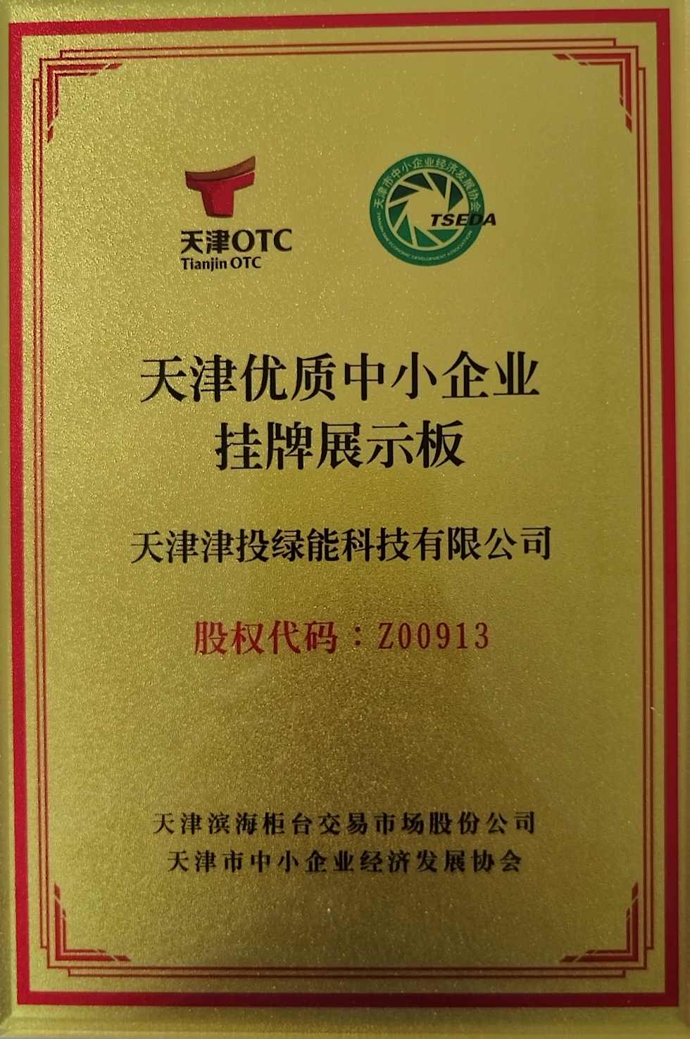 2025年首批!津投绿能进入天津优质中小企业挂牌展示板