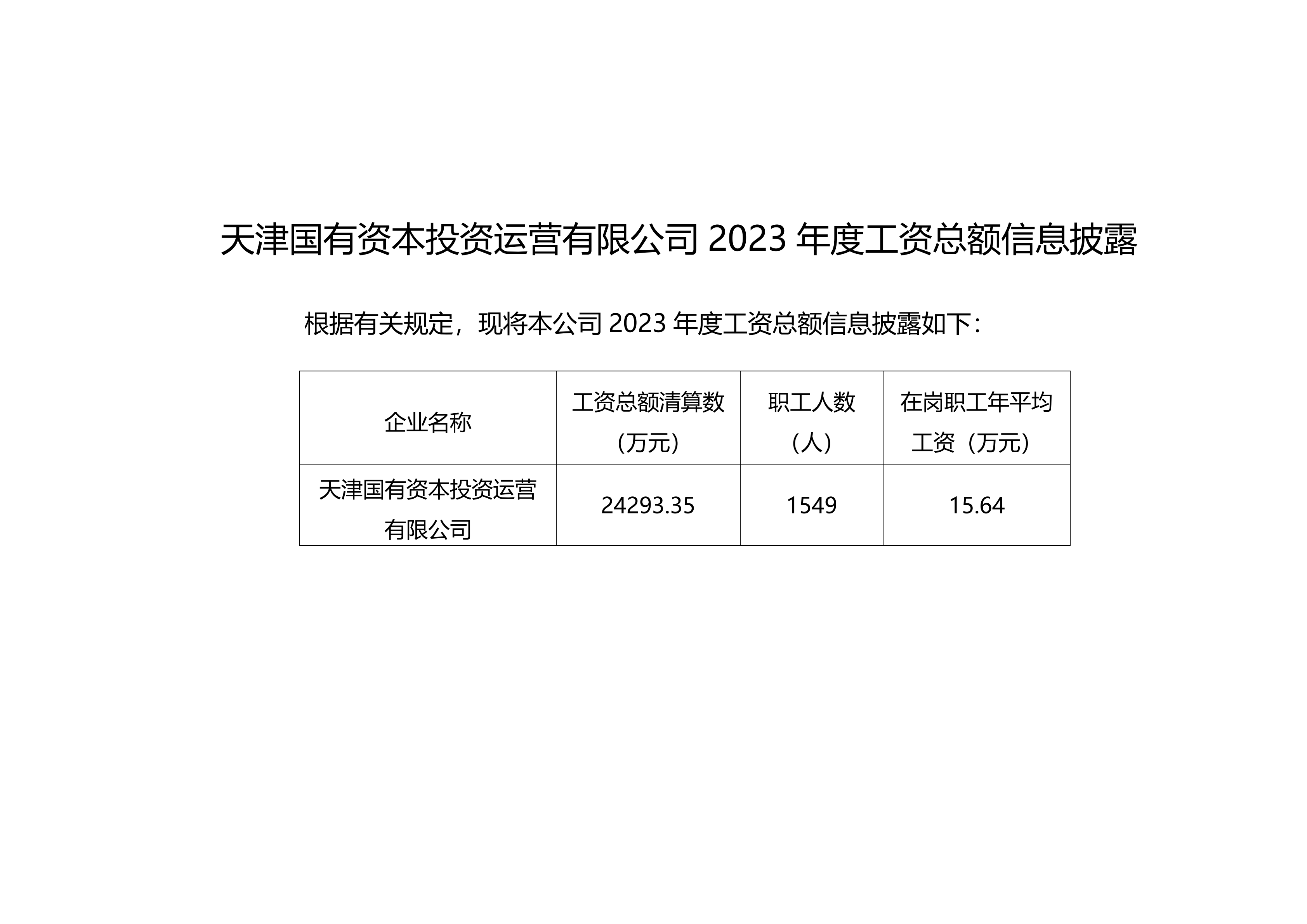 2023年度工资总额信息披露