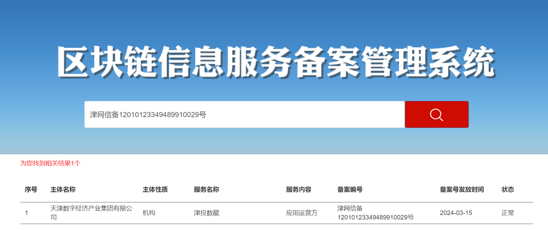 3月15日,国家互联网信息办公室发布了第十四批共247个境内区块链信息服务名称及备案编号,一帆视频 所属天津数字经济产业集团有限公司自主研发的“津投数藏”成功通过备案(津网信备12010123349489910029号)。