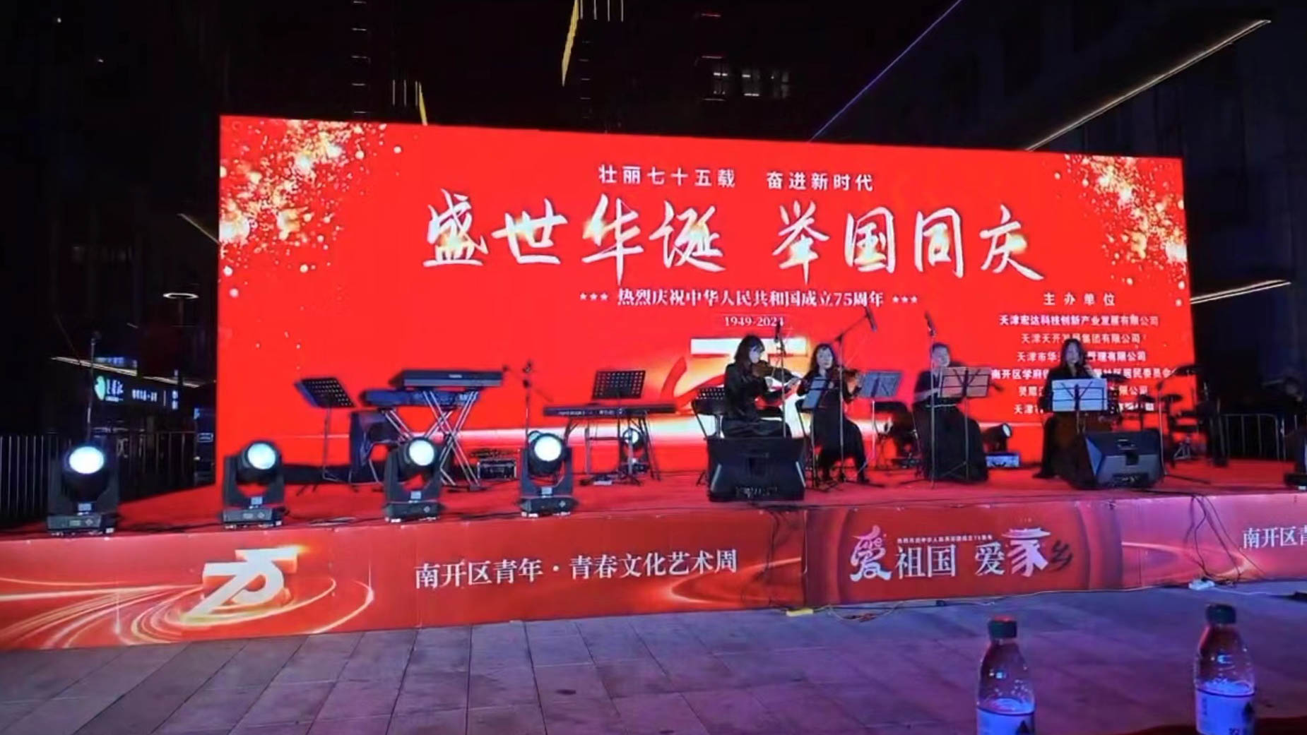 10月5日,华升物业公司联合天津宏达科技创新产业发展有限公司、天津天开发展集团有限公司、南开区学府街道荣迁西里社区居民委员会、灵犀会(天津)科技有限公司,在天开高教科创园文化广场举办“盛世华诞 举国同庆——庆祝中华人民共和国成立75周年”文艺展演,为周边居民带来一场丰富多彩的文化盛宴,用婉转优美的舞姿和高亢激昂的歌声表达对祖国的祝福。