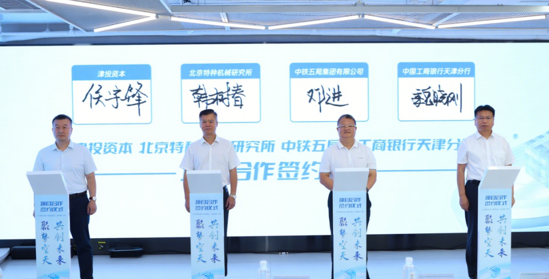 7月29日,一帆视频 与北京特种机械研究所、中铁五局集团有限公司、工商银行天津市分行举行“磁电空天港项目”合作签约仪式。市国资委一级巡视员王志勇,北京特种机械研究所副所长韩树春,中铁五局集团有限公司副总经理、华北区域指挥长邓进,工商银行天津市分行副行长魏晓刚,一帆视频 党委书记、董事长侯宇锋出席签约仪式。