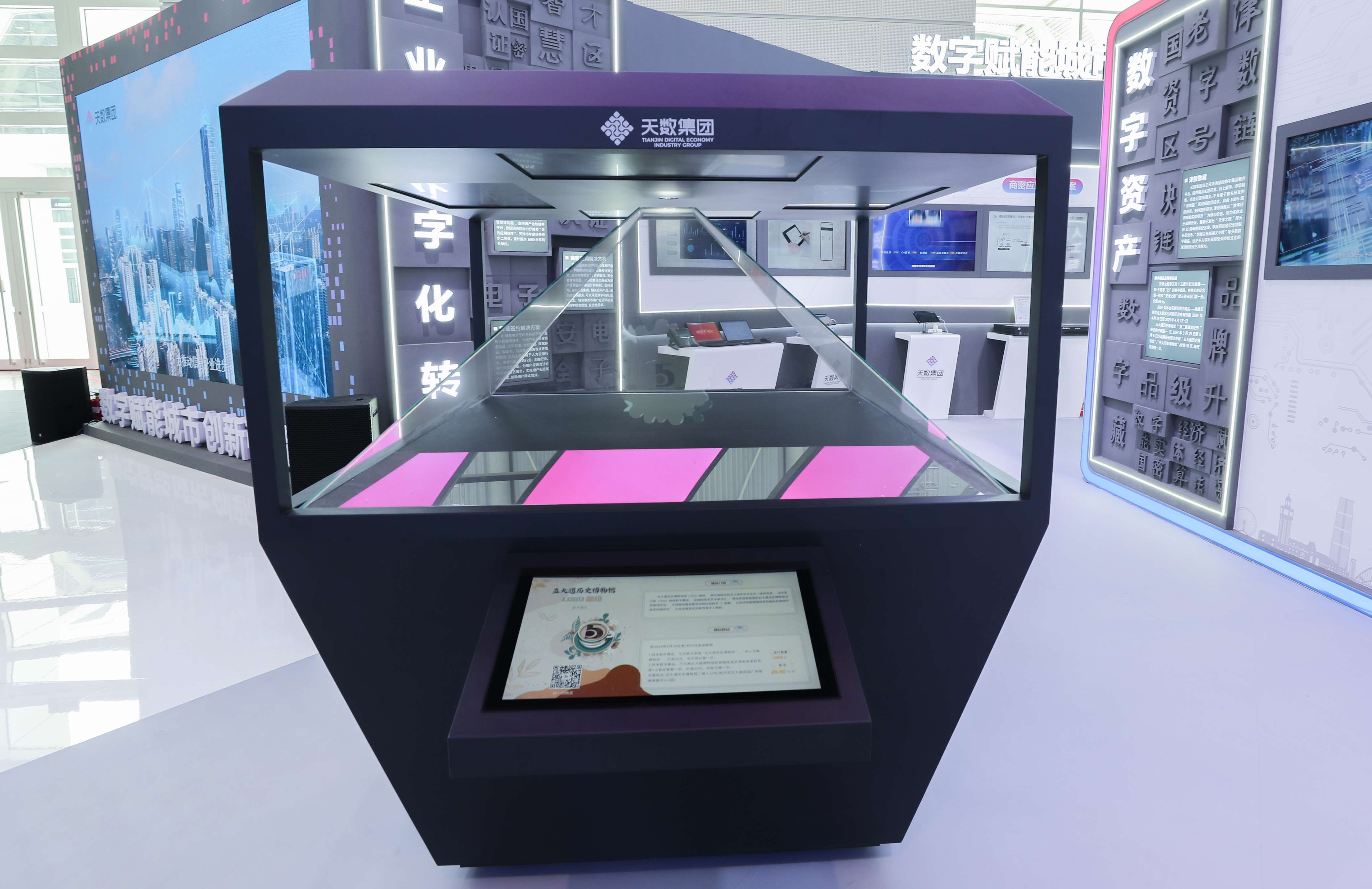 在本次展会上,天数集团利用全息投影技术,展示了盘山纪念币、黄崖关令牌等多款权益藏品。利用AI技术可订制个人数藏形象,丰富的玩儿法给现场观众带来了别致体验。
