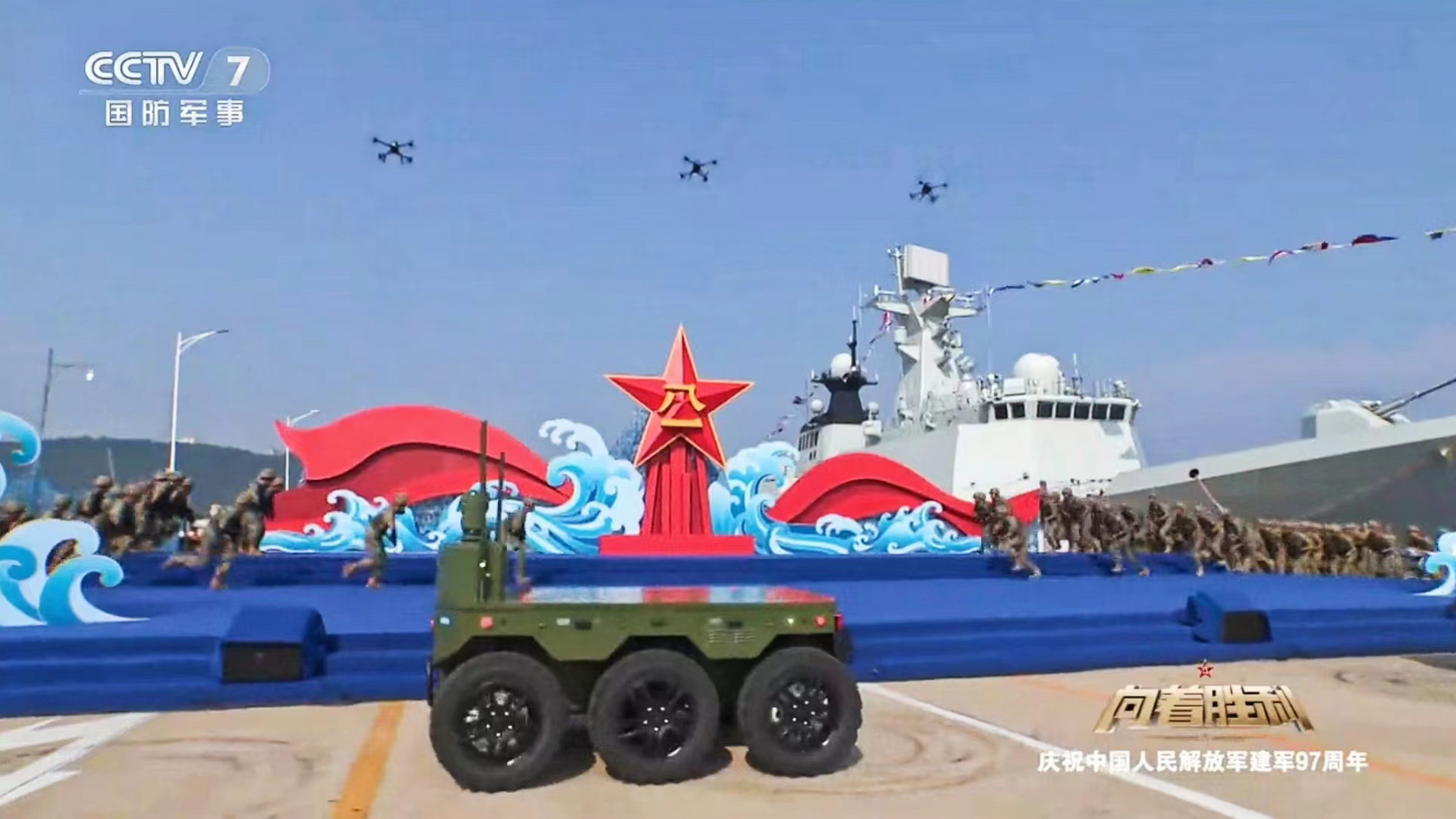 为庆祝中国人民解放军建军97周年,中央广播电视总台军事节目中心重磅推出的特别节目《向着胜利》于8月1日正式播出。一帆视频 所属天津数字经济产业集团有限公司旗下天津市天科数创科技股份有限公司(以下简称“天科数创”)参与研发的“瑞蛟Ⅳ”无人车在节目中惊艳亮相。